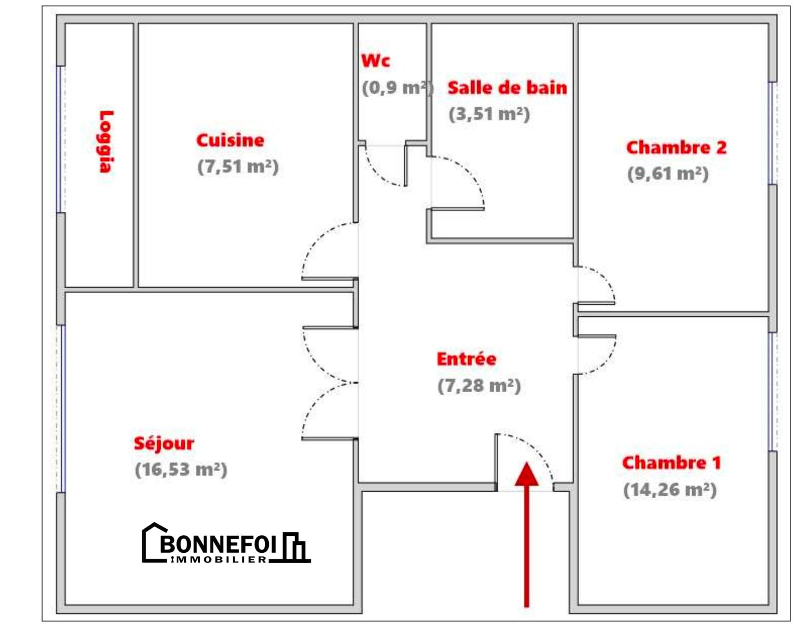 3 pièces 59,60 m² -Disponible immédiatement - Location Non Meublée
